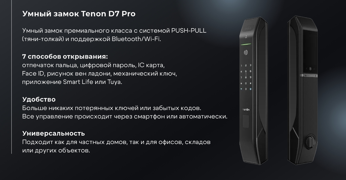 - Определите, какие способы доступа вам важны: отпечаток пальца, PIN-код, карта, смартфон, Wi-Fi — выбирайте то, что удобно.