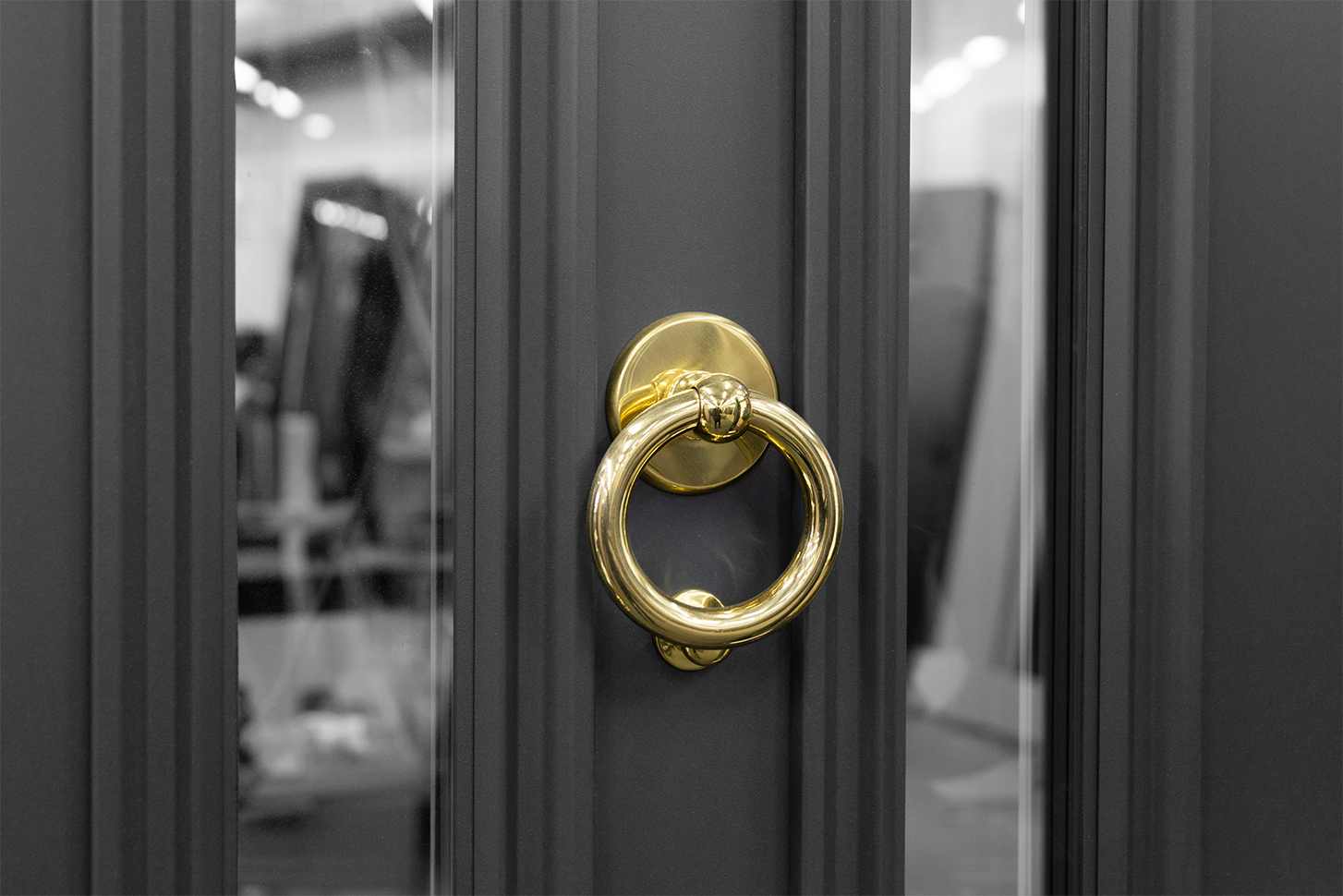 Ручка-стучало: поддержит целостный классический вид входной группы, придавая двери презентабельность и английскую утонченность.