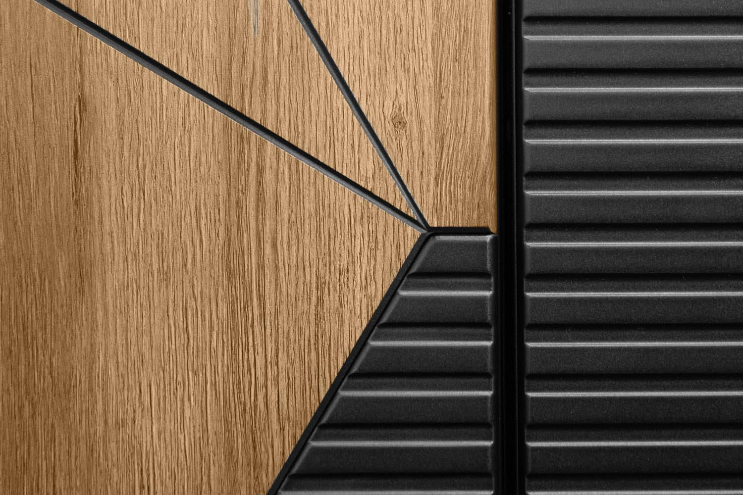 Черная фурнитура: комплект черной фурнитуры подчеркивает безупречный стиль двери. Гармонично сочетается с деревянной текстурой покрытия дверной панели.