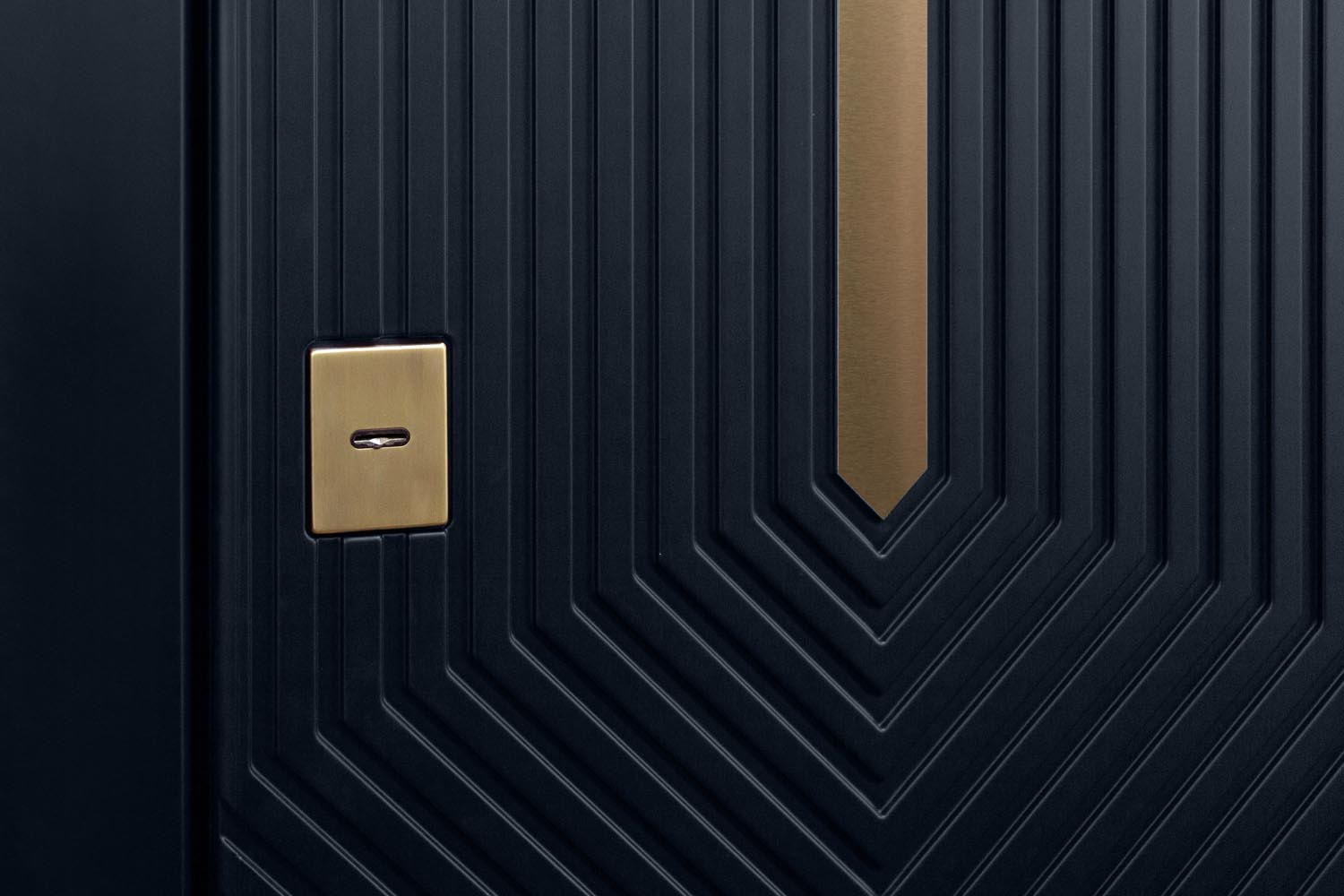 «Оригинальная модель с золотыми вставками» — входная дверь в квартиру Серии 100.