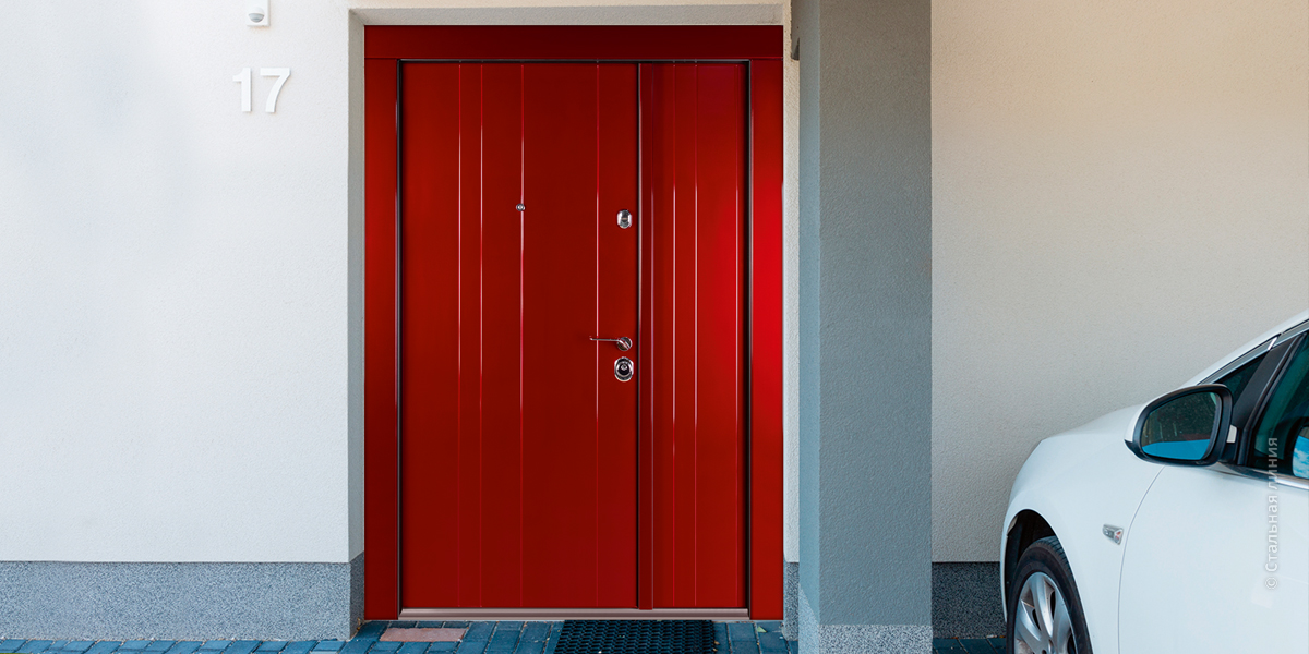 Входная дверь в дом Серии 100У в ярком цвете создана по индивидуальному заказу.