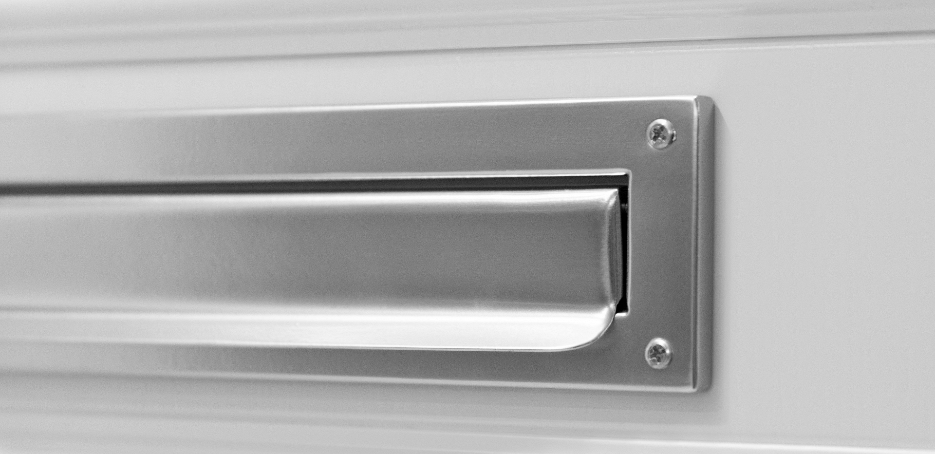 Модель со стучалом и почтовым ящиком — входная дверь в дом по индивидуальному заказу Серии 100У.