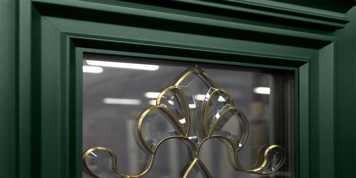 Модель с витражом заказчика — входная дверь в дом Серии 100М-УТ.