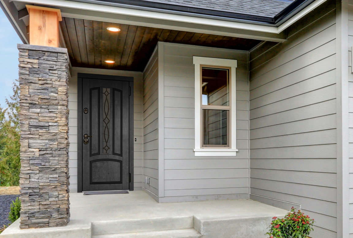 4 рисунка для окон в разных отделках: от матовой крашеной поверхности Стиллак® до фактурной отделки из натурального дерева Конкорд панель - позволят подобрать дизайн двери для любого экстерьера
