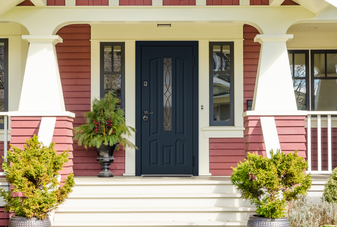 Дверь с окном придаст Вашему дому элегантность, парадность и станет ярким акцентом в дизайне экстерьера Вашего дома. Такая дверь может быть выполнена как в классическом, так и в современном стиле.