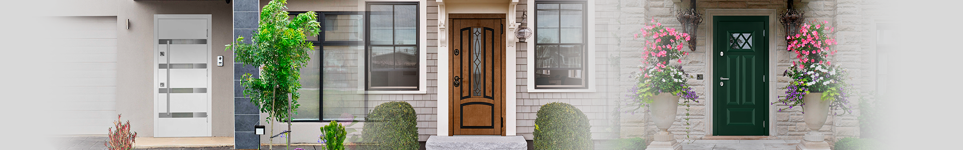 4 рисунка для окон в разных отделках: от матовой крашеной поверхности SteelLak® до фактурной отделки из натурального дерева Concord Panel - позволят подобрать дизайн двери для любого экстерьера