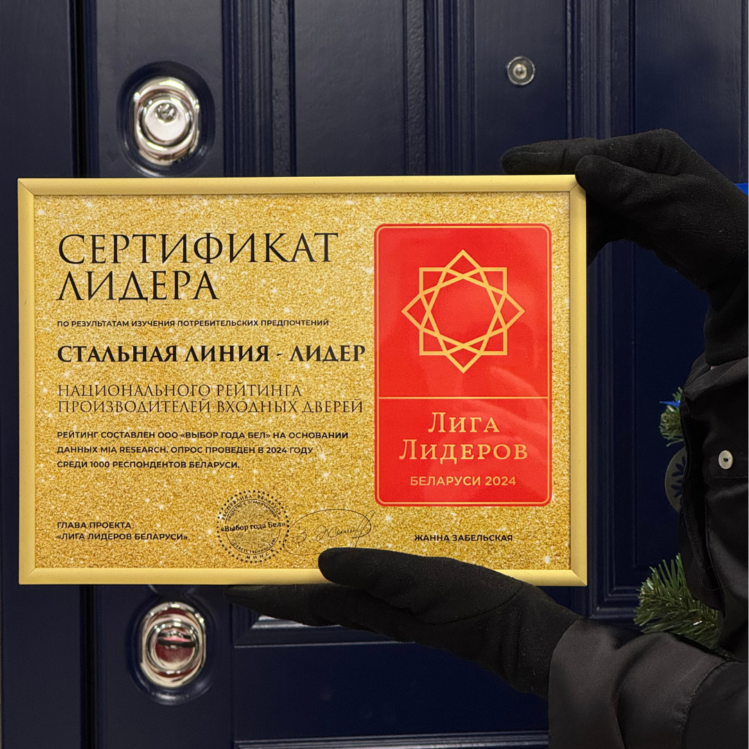 Еще одной наградой компании за 2024 год является «Сертификат Лидера» национального рейтинга производителей входных дверей. «Стальная линия» в очередной раз одержала победу в ежегодном опросе по изучению потребительских предпочтений.