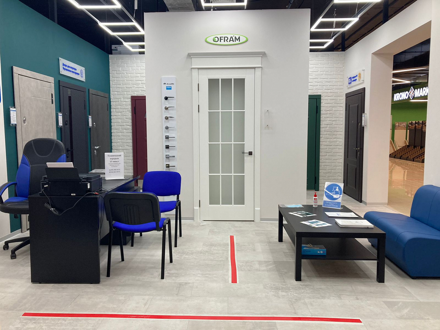 В салоне представлено 15 образцов дверей для квартиры и дома. Это модели в современном и классическом стиле с различными вариантами отделки: из натурального дерева, матовые и глянцевые, с окнами, витражами и коваными решетками. Салон открыт с с 10:00 до 21:00 ежедневно.