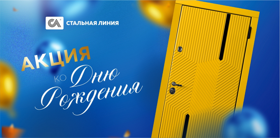 С 23 по 27 апреля «Стальная линия» в честь своего дня рождения предоставляет скидку до 15% на входные двери для квартиры и дома. Специальное предложение распространяется как на стандартные модели, так и на двери на заказ.
