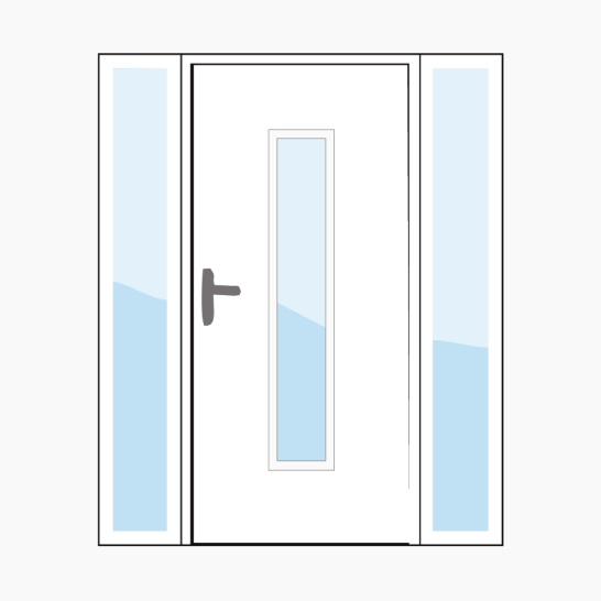 Благодаря доборам и фрамугам дверь подходит для установки в широкий проем. Минимальная ширина бокового добора: 300 мм.